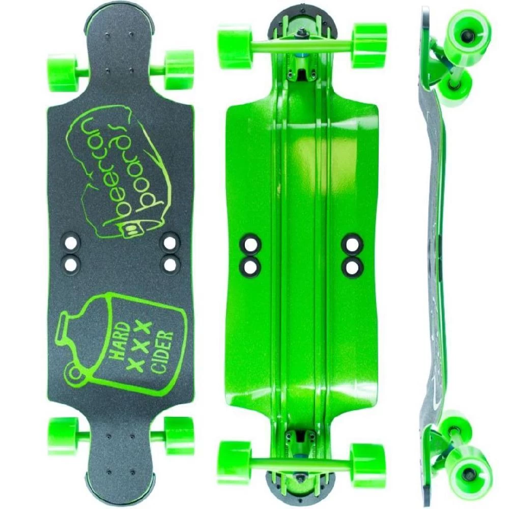 This bold Green Hard Cider 35″ Longboard is equipped with Bear trucks and our signature Beercan Boards wheels, which reduce the risk of wheel bite and give you a smooth and easy ride. Unlike its wooden ancestors, the Hard Cider’s shape and aluminum construct make it easy to maneuver and nearly impossible to destroy! This model is perfect for younger kids as well as those who just want to take it easy.