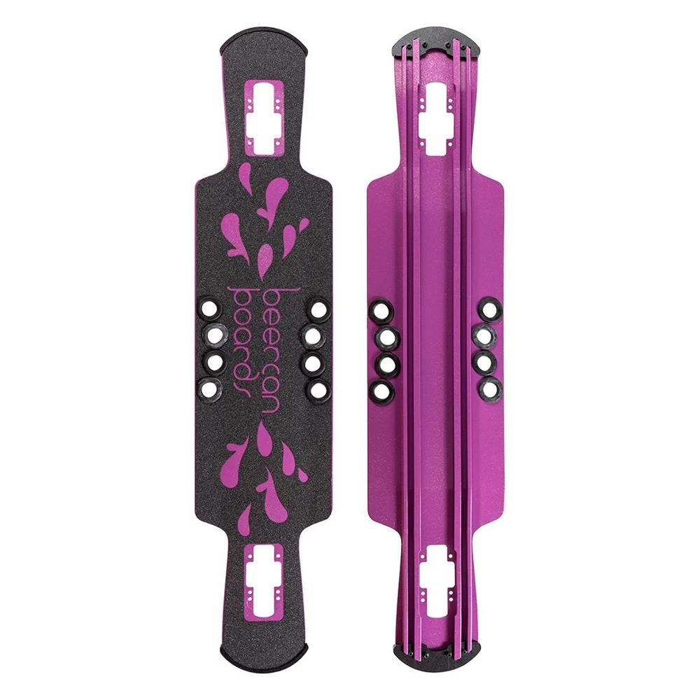With eco-friendly “Bottle Caps” nose guards, custom die-cut grip tape, and a durable powder coat finish, this deck is designed for both aesthetics and durability. Elevate your longboarding experience with the Beercan Purple 37″ Kegger Lite Drop Through Longboard Deck.