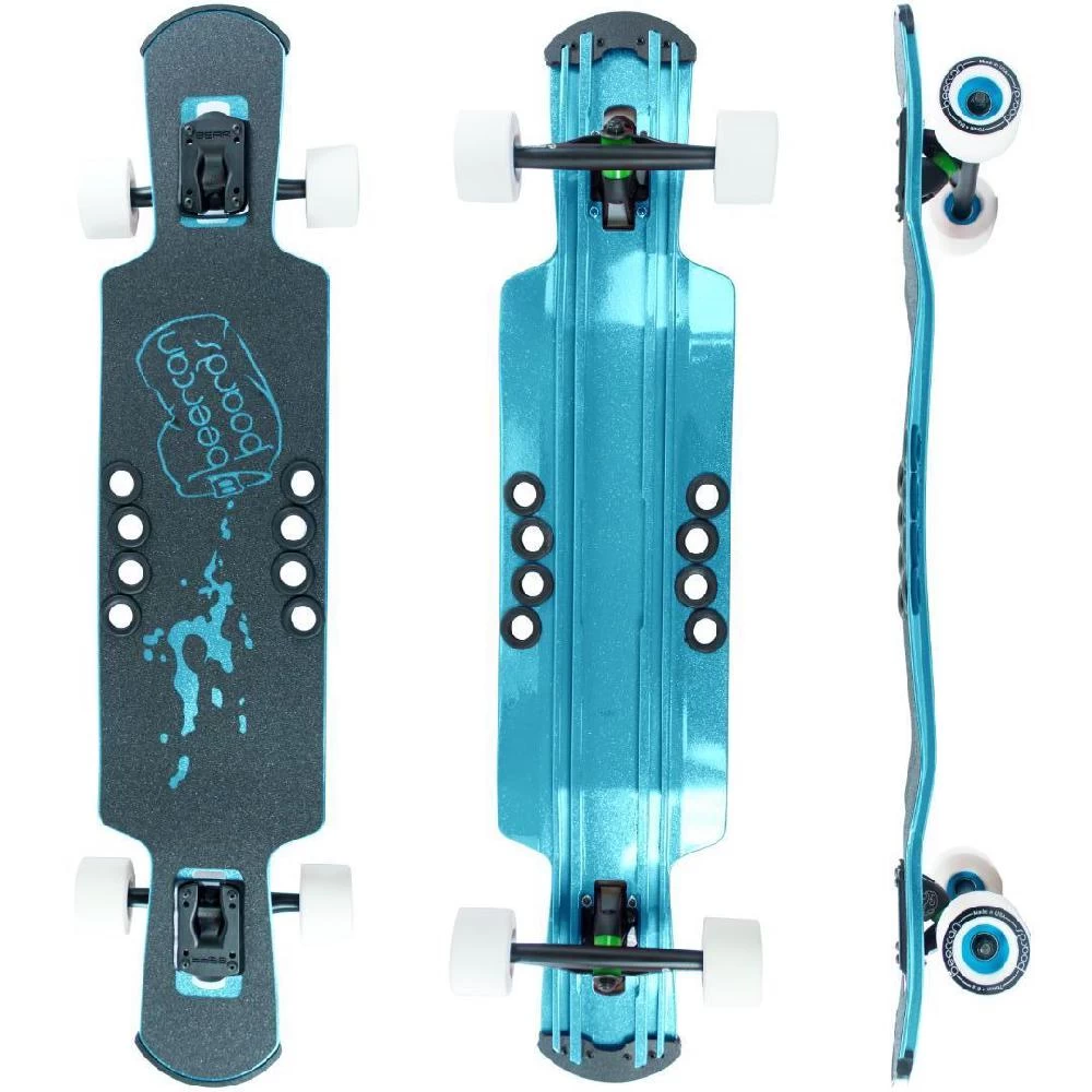 Like its big brother, this Sea Foam Kegger Lite deck is equipped with Bear trucks and our signature Beercan Boards wheels, which reduce the risk of wheel bite and give you a smooth and easy ride. The slender body is better for those who want all the power of a Kegger without all the bulk. These boards stand out from our other Beercan Boards thanks to their signature double kicks, which help with navigating, tricks and freestyling. Unlike its wooden ancestors, the Kegger Lite’s shape and aluminum construct make it easy to maneuver and nearly impossible to destroy!