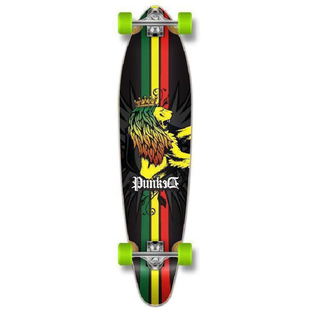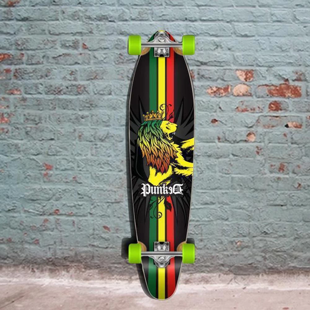 This is the first Rasta kicktail longboard in this series. Feel yourself on a tropical island along the beach. With its Jamaica colors yellow, green, red, and black, you have no trouble dancing on this board.