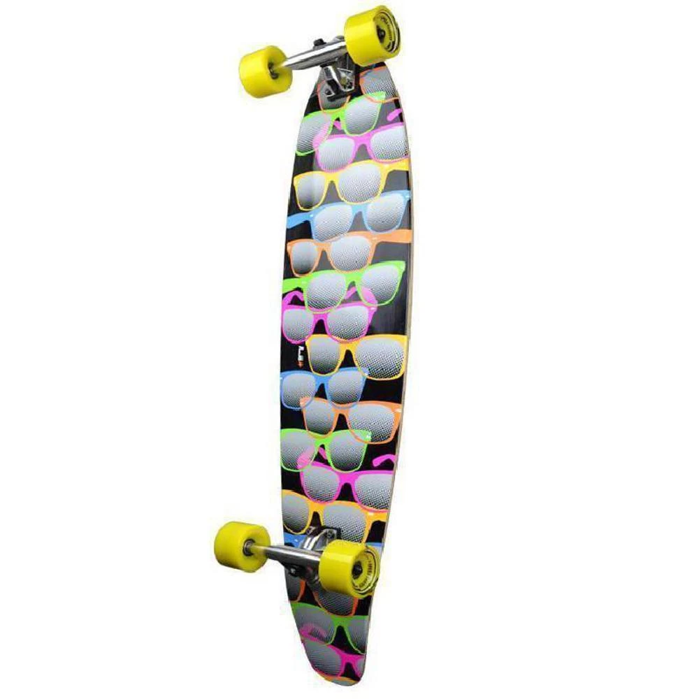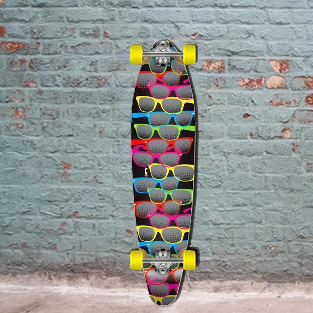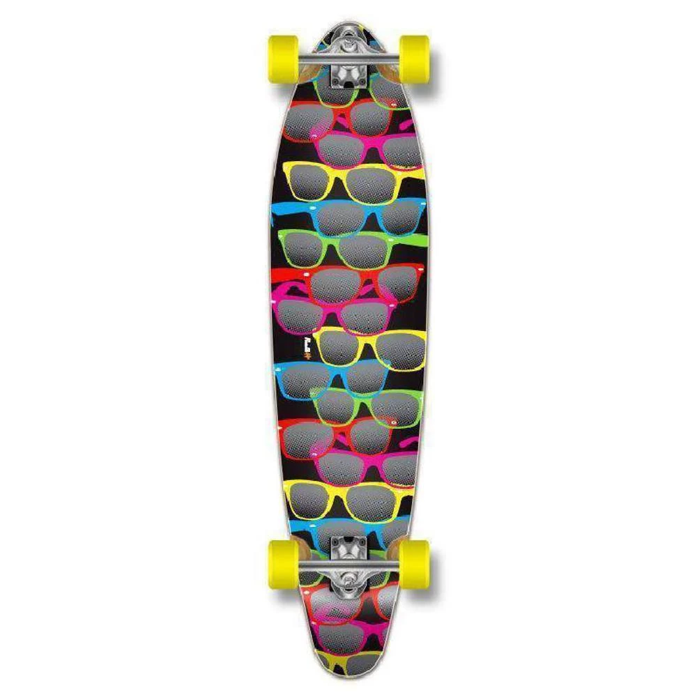 A cool sunglass longboard from Punked: The Shades kicktail longboard. This board comes fully assembled, so you can shred right away!