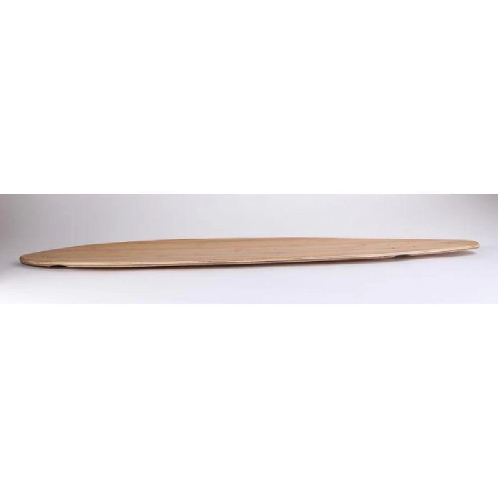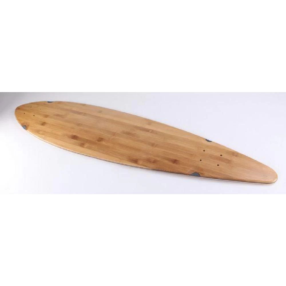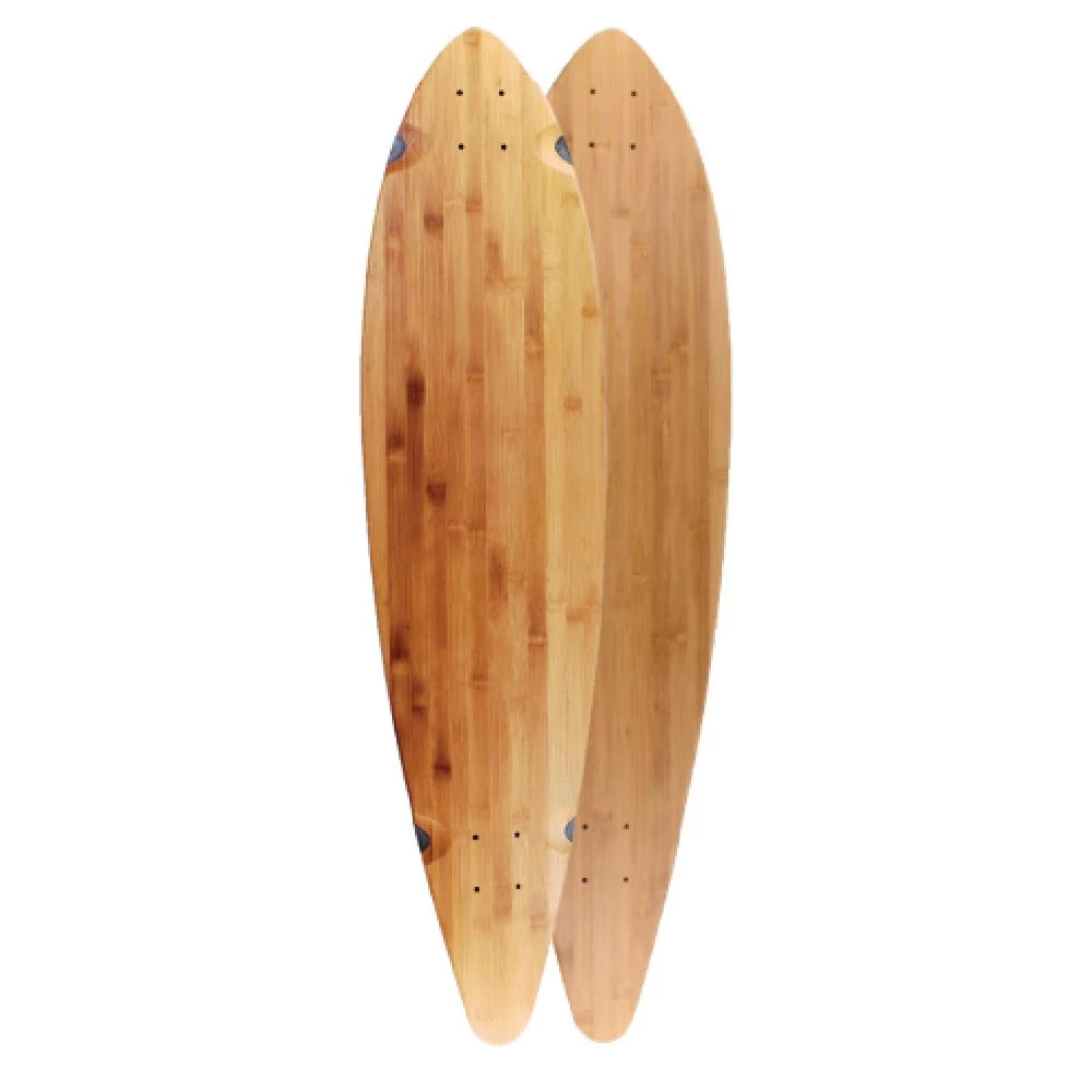 This is a great Bamboo flexible Pintail Longboard! The 40-inch x 9.25 inch Deck is made of 8 ply bamboo, so very eco-friendly and long-lasting with a great amount of flex.