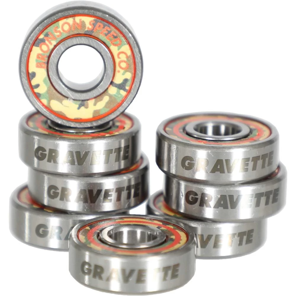 Bronson Speed Co is proud to release David Gravette’s signature G3 bearing. David’s signature bearing features a camo and orange Pro Colorway and “GRAVETTE” laser etched on the outside bearing ring.