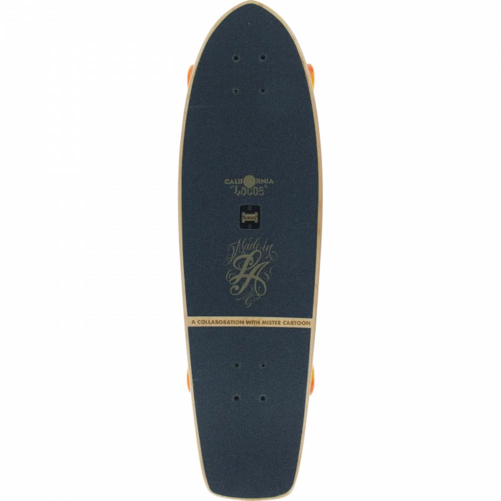 The California Locos Guadalupe X Mister Cartoon is the perfect cruiser, with a low concave mold, bigger and softer wheels, plus angled risers, this board will ride as smoothly as a surfboard.