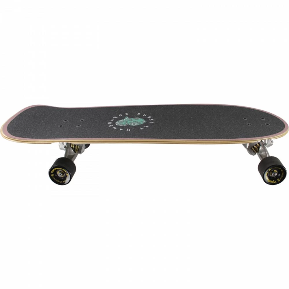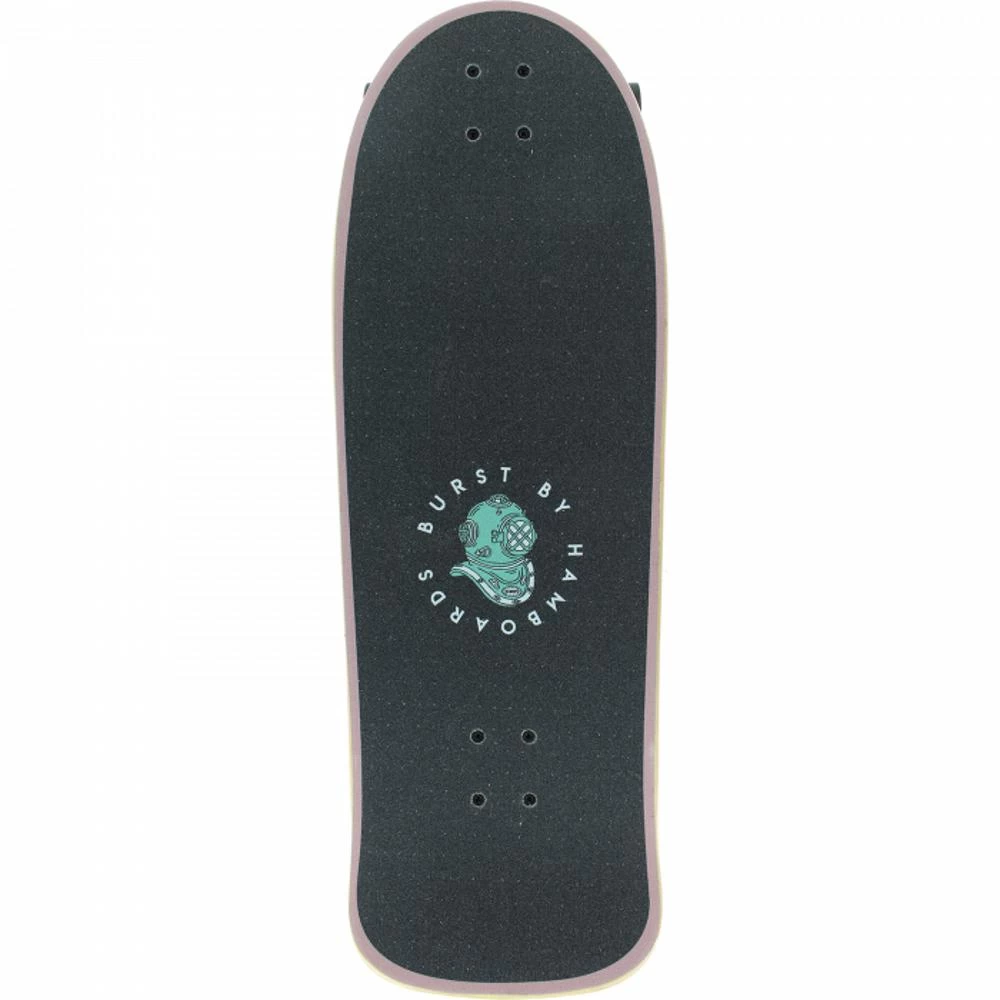 The Burst is built with the HST 2.0 truck system. It has a 40° pivot axis in the front, and a 20° pivot axis in the rear, and both trucks have 180mm hangers. It is 32″ long and 10″ wide with a 19″ wheelbase. This setup makes the Burst pump like no other board we have ever made.