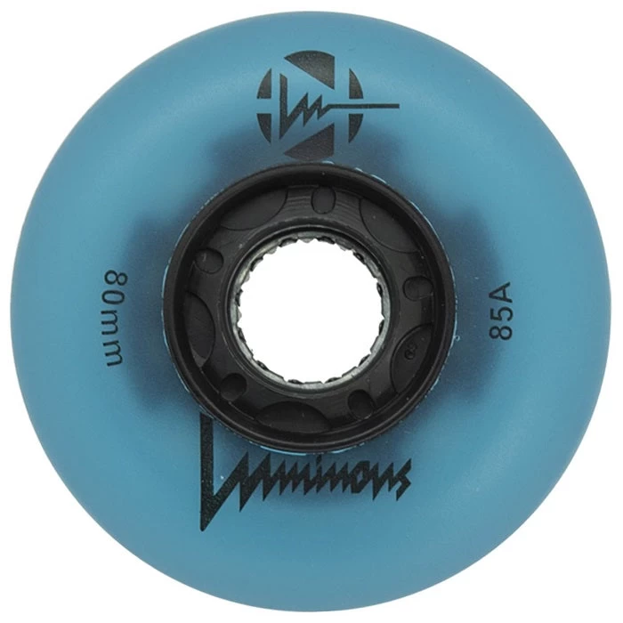 Pack of four Luminous Light Up Inline Skate Wheels in Blue Glow. Light up inline skate wheels have become extremely popular recently and the Luminous brand make some of the best out there. Available in 72mm, 76mm and 80mm. Mix and match with other colours for your own custom setup.