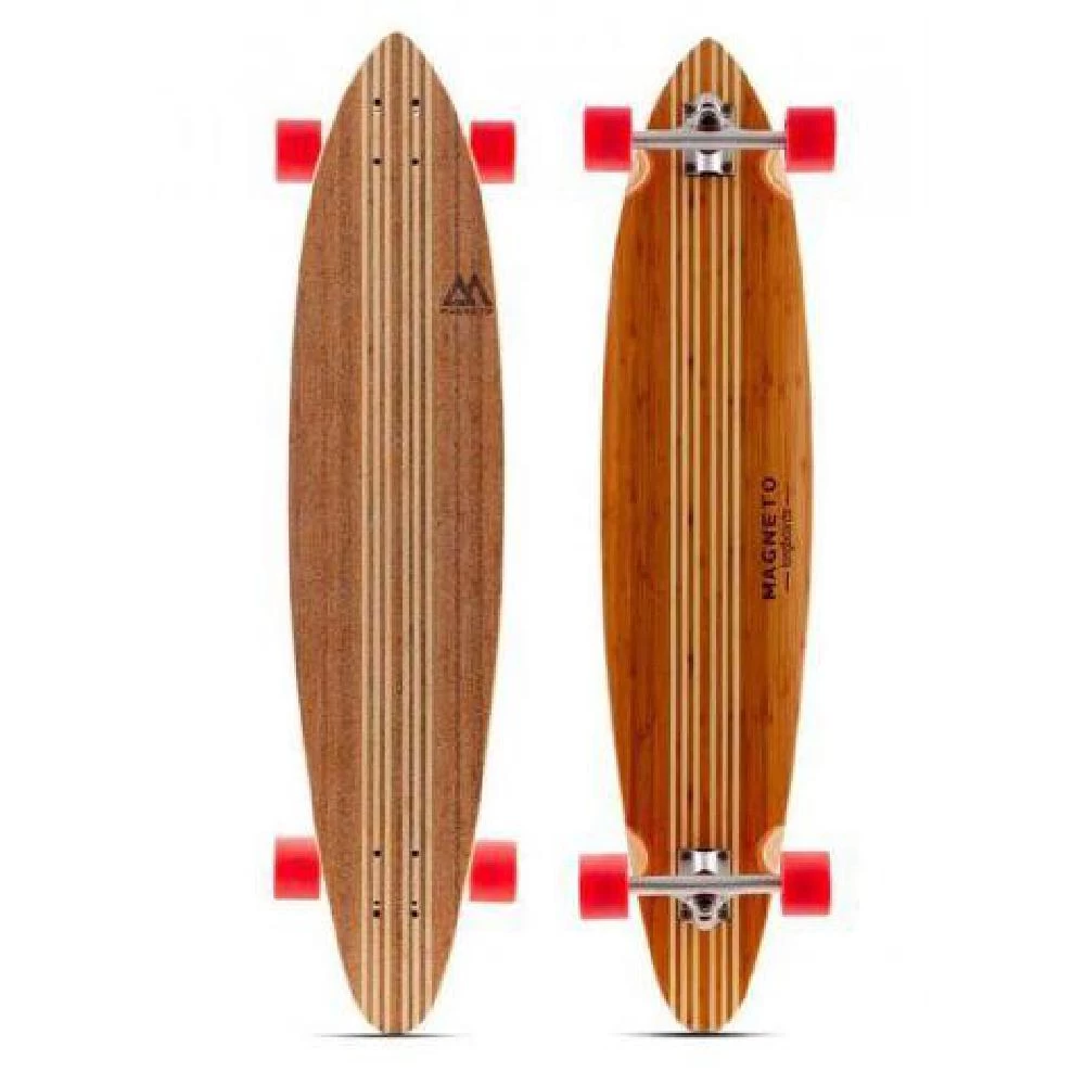 The classic pintail shape of this board makes it ideal for cruising around town in style. The deck is an 8 layer laminate with a hard maple core and a beautifully stained striped bamboo top and bottom.