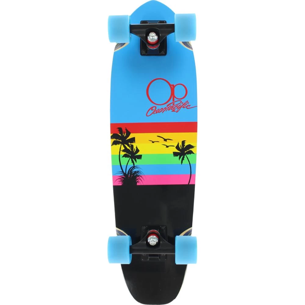 Ocean Pacific Sunset Navy and Black Cruiser Skateboard measuring 27″ long by 7.5″ wide. We are loving OP’s retro surf graphics and the bright loud colors on their boards. This little cruiser is ideal for rolling through the park or bringing some color to the street.