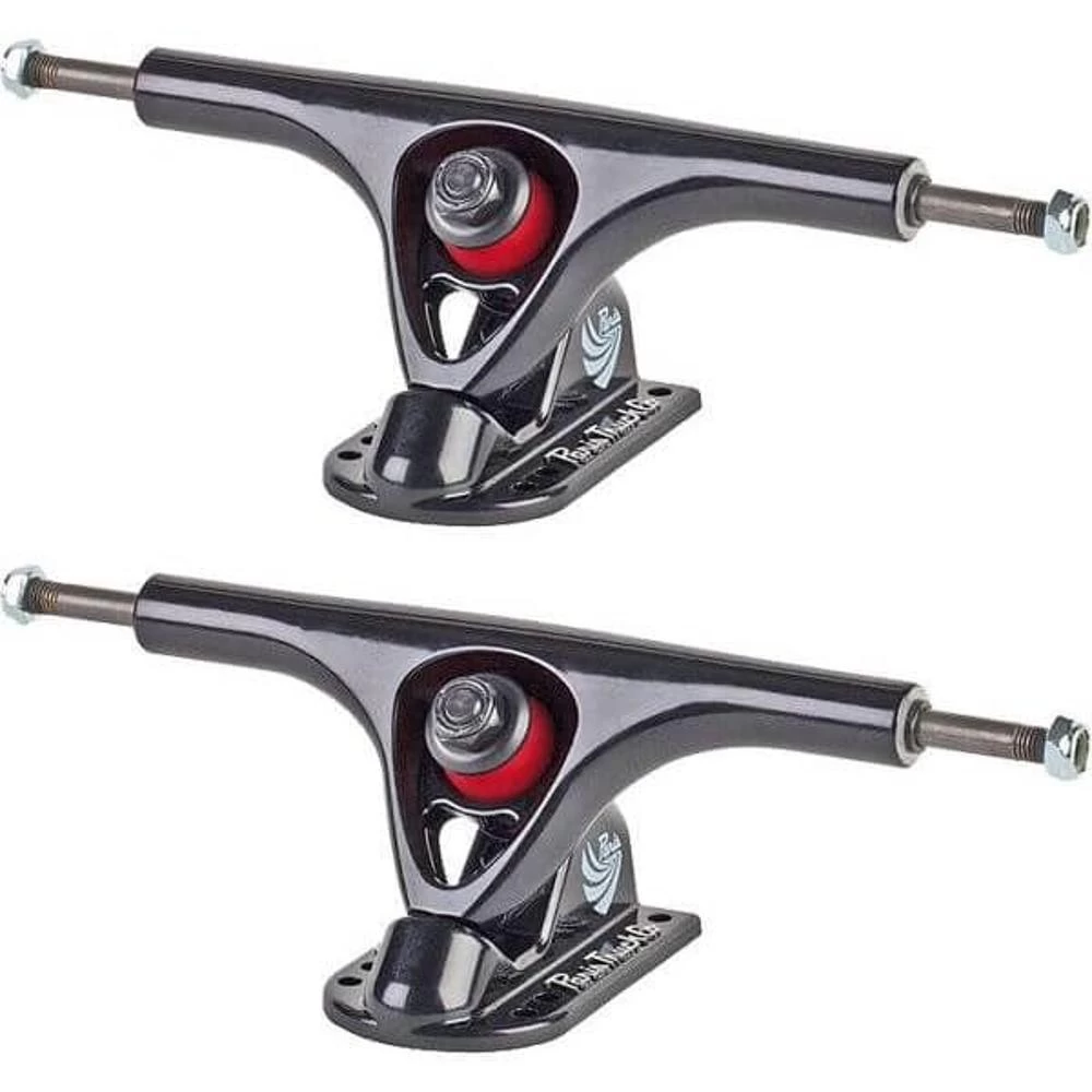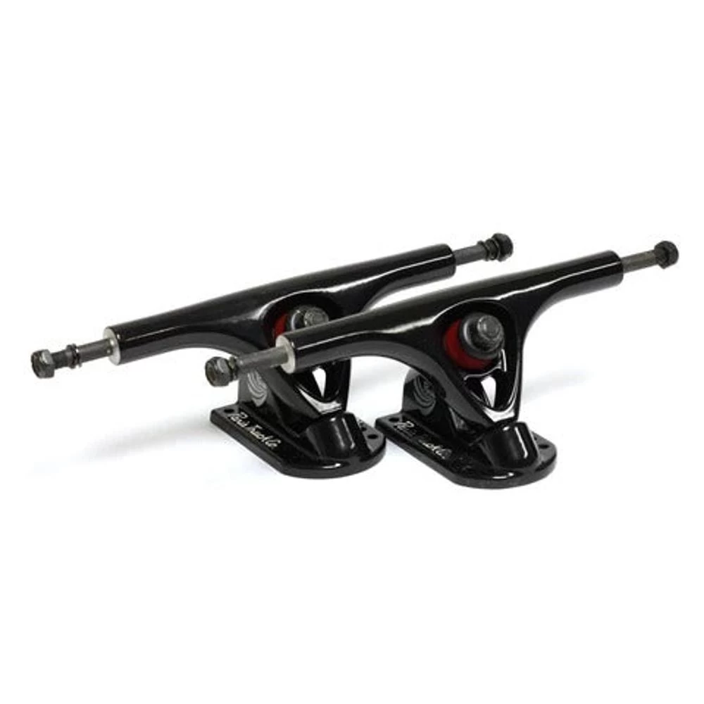 The 195mm hanger generates less leverage when compared to a narrower hanger and the deeper bushings seat offers a solid center point. The 195s are built with two 90a barrel bushings and a flat washer on top for added support.