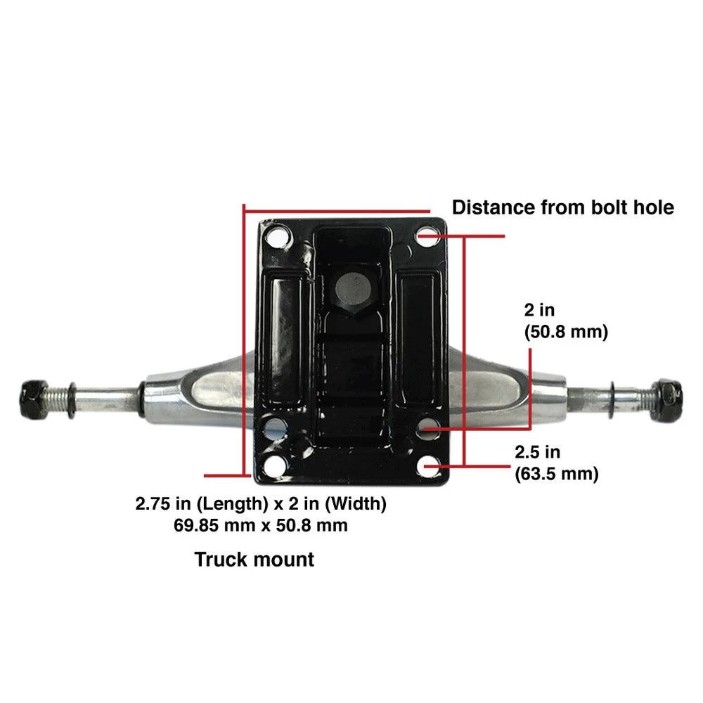 This trucks comes with a Black baseplate and a Chrome hanger and axle for some sick and shiny vibes. Offering a Aluminum Alloy construction for a classic design and lightweight feel.