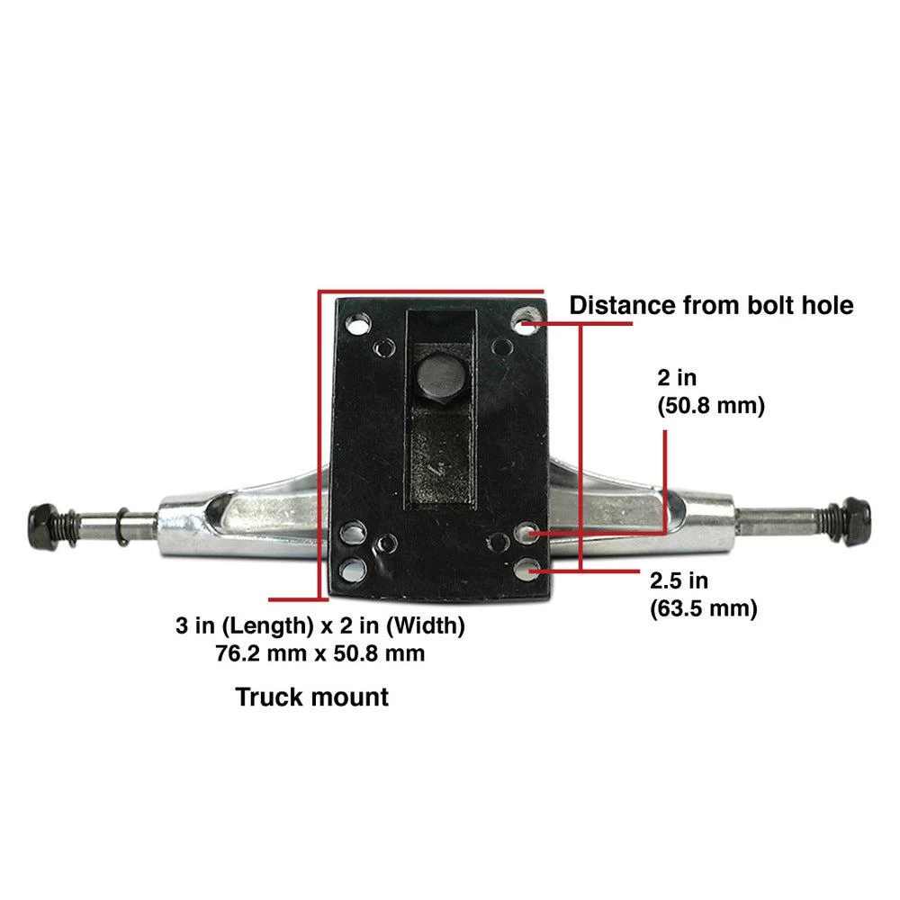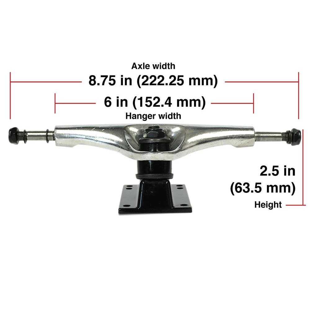 These trucks come with a Polished baseplate and a Polished hanger and axle for some sick and shiny vibes. Offers an Aluminum Alloy construction for a classic design and lightweight feel.Â