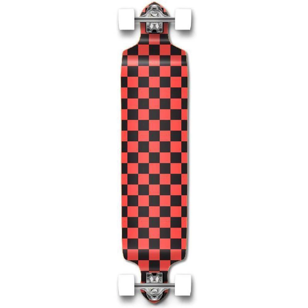 The Complete Checker Drop Down Longboard is designed to provide with the rider with a lower center of gravity since the foot platform sits lower than the trucks.