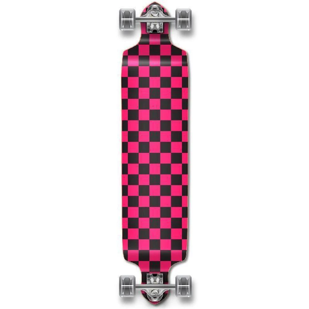 Complete Checker Drop Down Longboard is designed to provide with the rider with a lower center of gravity since the foot platform sits lower than the trucks. With no flex, the drop down downhill deck is capable of achieving high speed and is perfect for Downhill rider. This great checker pattern can be found in multiple color variations including blue, red, green, purple, white, pink, yellow, orange, and silver checkers. This is the Checker Pink longboard complete and ready to ride.