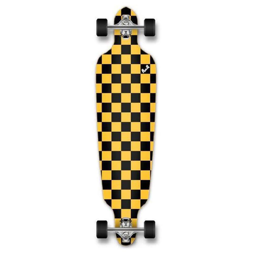 It might not be suitable for beginners. The medium concave and low flex allows the rider to maintain control when carving or sliding at higher speeds. This great checkered longboard patternĀ is availableĀ in multiple color: blue, red, green, purple, white, pink, yellow, orange, and silver. This is the yellow checked drop through longboard and ready to ride.