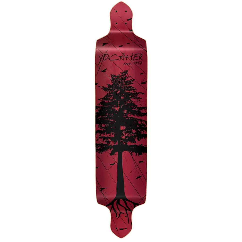 In The Pines Series Drop Down Longboard The Drop Down deck is designed to provide with the rider with a lower center of gravity since the foot platform sits lower than the trucks. With no flex, the Drop Down is capable of achieving high speed and is perfect for Downhill riding In The Pines In the Pines series is the fall 2016 design that aims to bring you back to nature. Nothing is better than taking a nice long ride and reconnecting with mother earth. This longboard comes in different color variations including; Rasta deck with green wheels, red deck with yellow wheels, blue deck with pink wheels, or a natural deck with purple wheels.