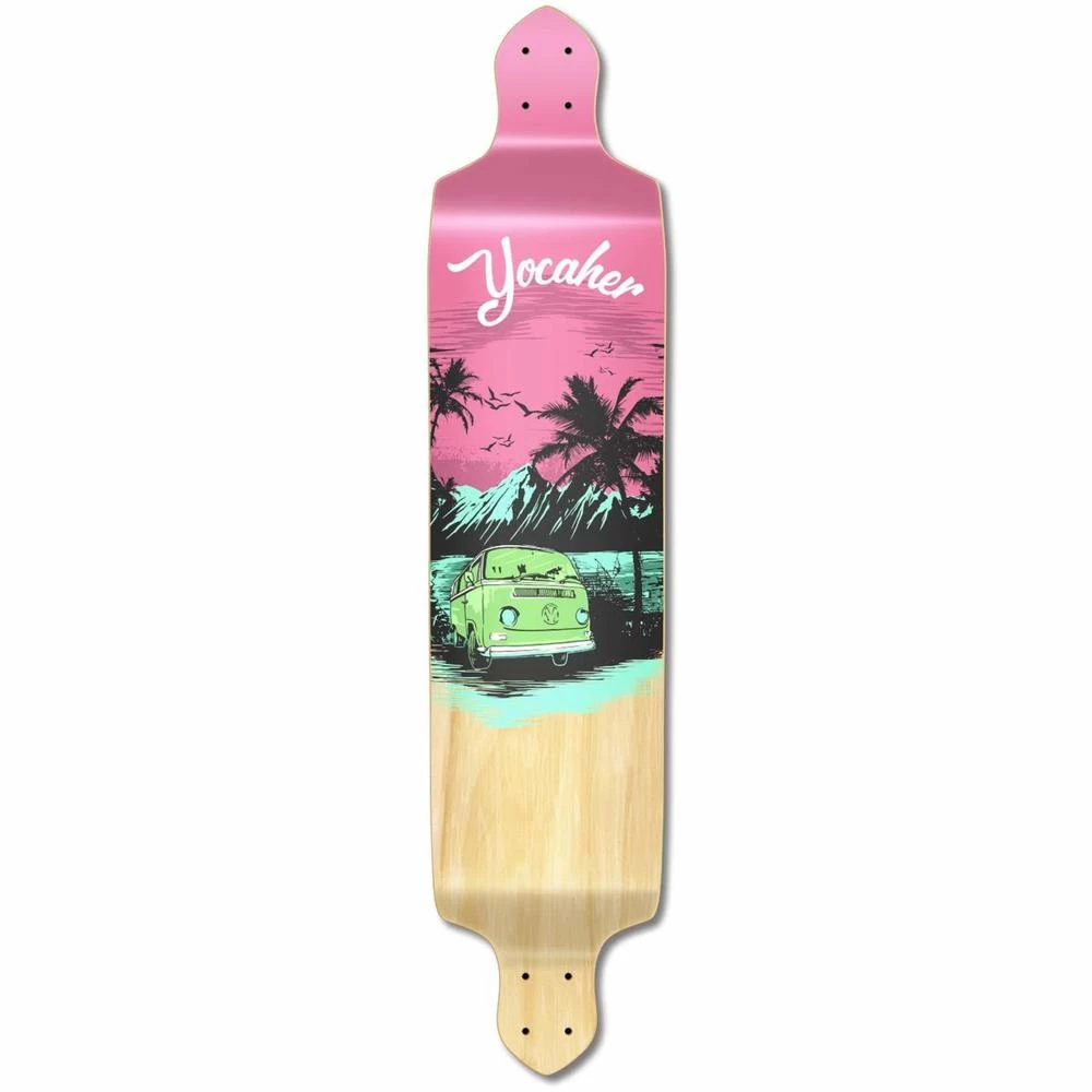 VW Series: Pink N’ Mint Drop Down Longboard The Drop Down deck is designed to provide with the rider with a lower center of gravity since the foot platform sits lower than the trucks. With no flex, the Drop Down is capable of achieving high speed and is perfect for Downhill riding.
