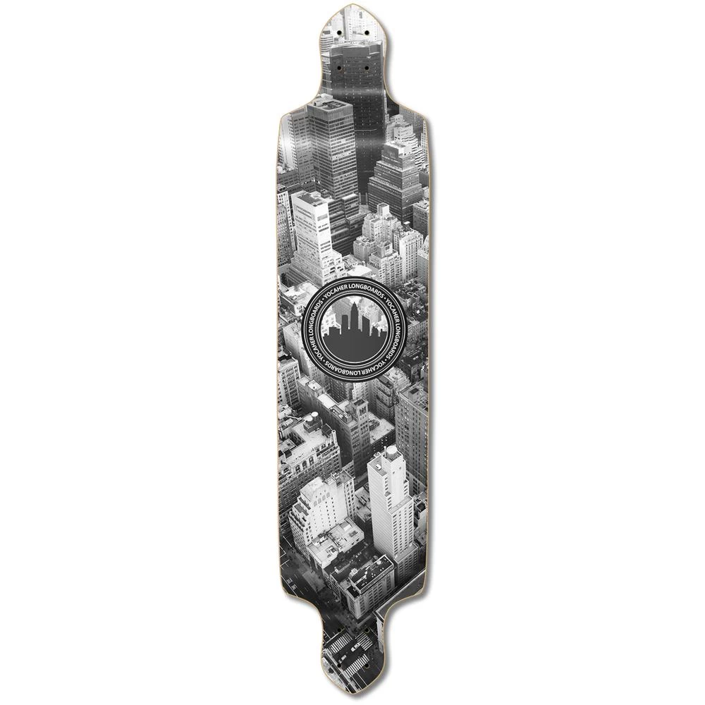 New York Drop Down Longboard The Drop Down deck is designed to provide with the rider with a lower center of gravity since the foot platform sits lower than the trucks. With no flex, the Drop Down is capable of achieving high speed and is perfect for Downhill riding New York As part of our CitySkape collection this graphic depicts newyork in all of its beauty.