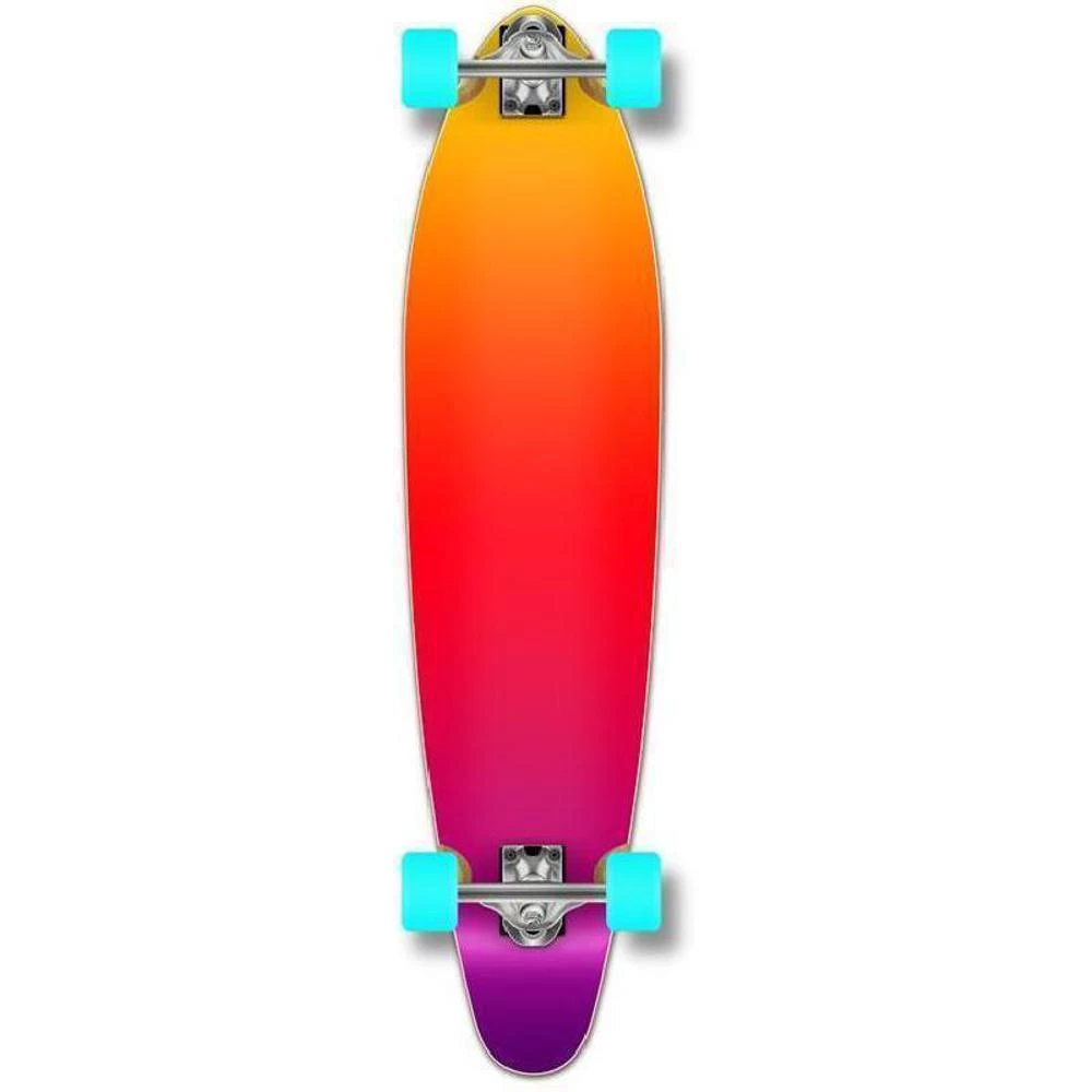 This Pink color scheme with the kicktail longboard utilizes different hues of green, blue, and yellow in a fashion that is reminiscent of an early summer morning.