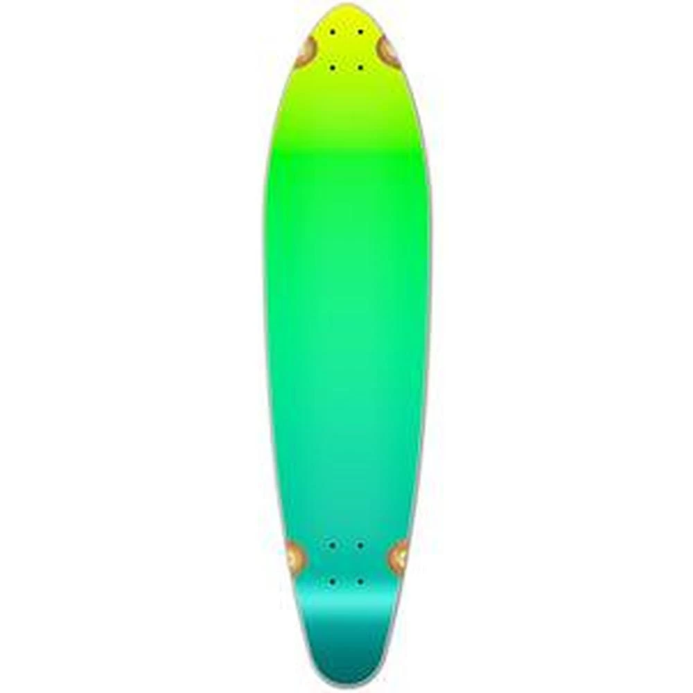 The Kicktail is similar to the pintail shape, but the kicktail shape has a few different features that allows the deck to give the rider more utility. It features a low grade of concave and a kicktail to give riders a more control when riding. Gradient Green This green color scheme utilizes different hues of green, blue, and yellow in a fashion that is reminiscent of an early summer morning.