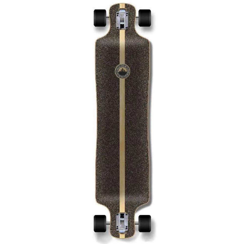 Complete Black Digital Wave Lowrider Longboard The lowrider provides the notable features from the Drop Through and Drop Down deck styles. The trucks are top mounted and the foot platform sits lower than the trucks. This shape deck allows for gnarly shredding and free-ride capabilities. This deck shape is designed for experienced riders. Digital Wave This board is a new age digital rendition of waves running parallel to each other across the sides of the board. This graphic can be found as a blue digital wave over either a black or a white background.