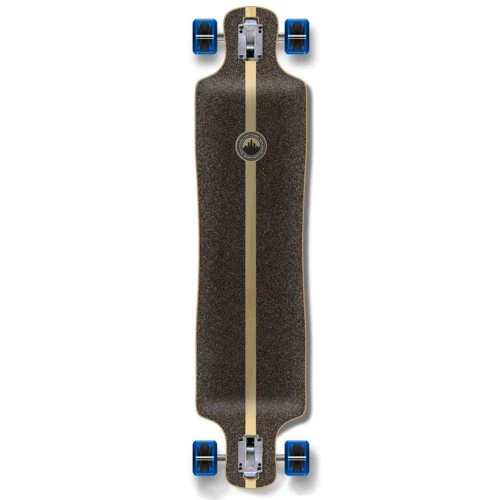 Complete “Digital Wave / White” Lowrider Longboard The lowrider provides the notable features from the Drop Through and Drop Down deck styles. The trucks are top mounted and the foot platform sits lower than the trucks. This shape deck allows for gnarly shredding and free-ride capabilities. This deck shape is designed for experienced riders. Digital Wave This board is a new age digital rendition of waves running parallel to each other across the sides of the board. This graphic can be found as a blue digital wave over either a black or a white background.