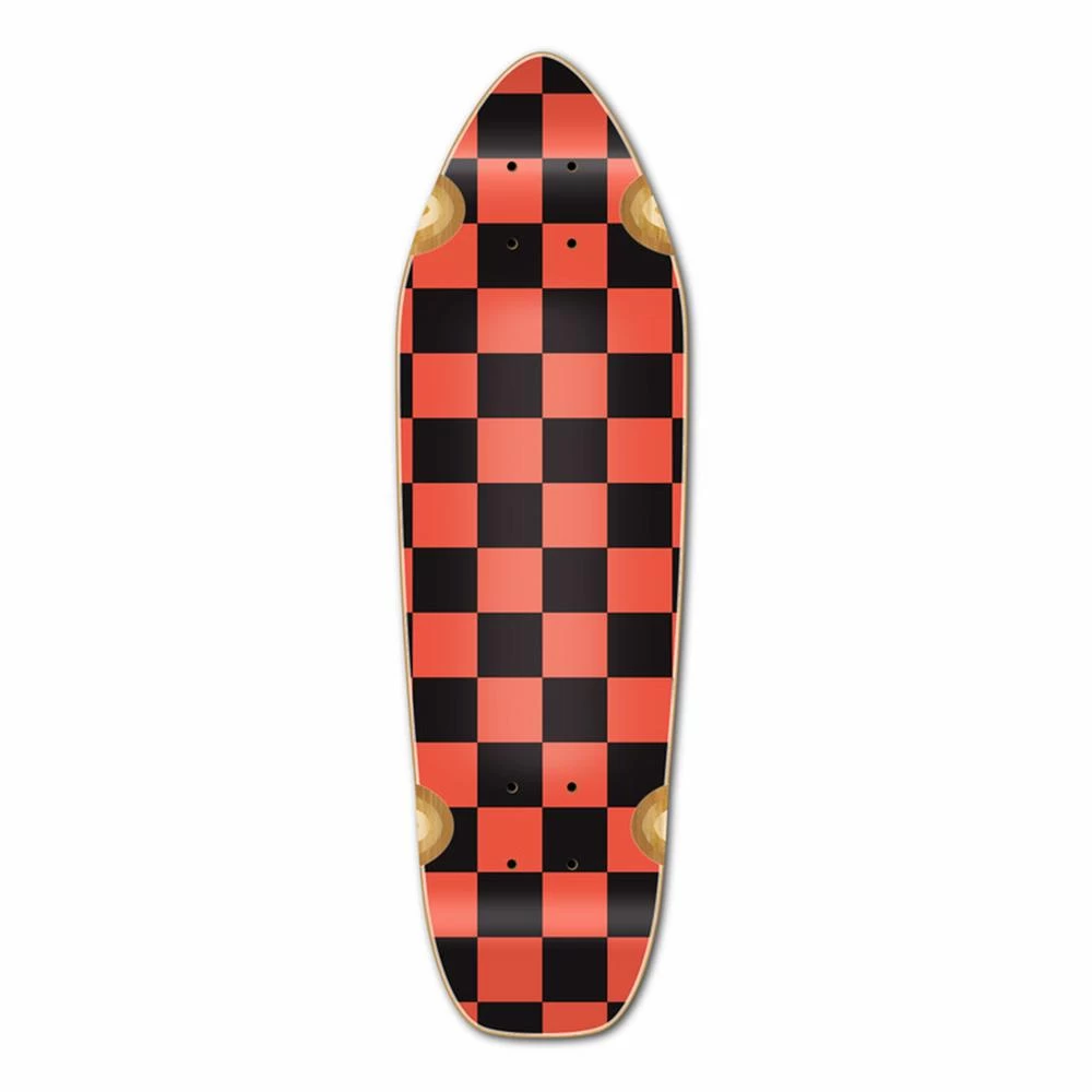 Checker Mini Cruiser This small deck shape is most popularly known as a campus cruiser. Its small size allows intense carving and total control when utilizing the kicktail for sharp turns. Checker This great checker pattern can be found in multiple color variations including blue, red, green, purple, white, pink, yellow, orange, and silver checkers.