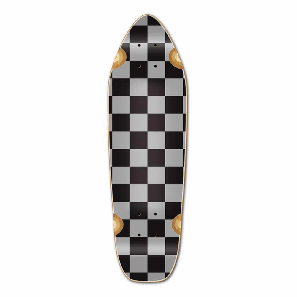 Checker Mini Cruiser This small deck shape is most popularly known as a campus cruiser. Its small size allows intense carving and total control when utilizing the kicktail for sharp turns. Checker This great checker pattern can be found in multiple color variations including blue, red, green, purple, white, pink, yellow, orange, and silver checkers.Â