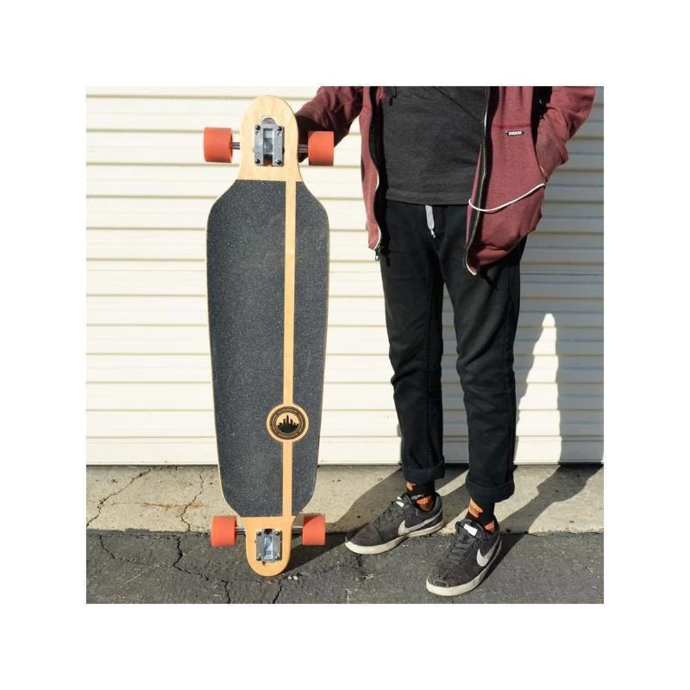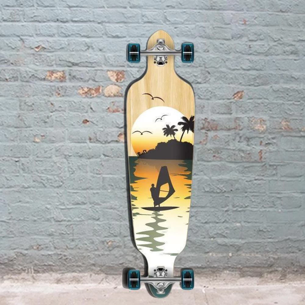 Buy this Surfer drop through longboard and it will help you get around the boardwalk, street of the hill and campus with ease. Skate away on this nice natural graphic board. Comes also in Green.