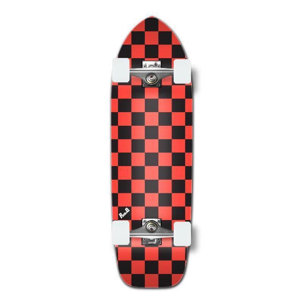 Complete Checker Old School Longboard The old school board is a classic. The retro style deck features a 16 wheelbase, which is the industry standard for a pool thrasher. With a nose slightly longer than other boards with the same wheelbase, the Old School Cruiser will allow the rider to perform more tricks and the option for different styles of pool shredding. It has old school flavor, with a modern twist. Checker This great checker pattern can be found in multiple color variations including blue, red, green, purple, white, pink, yellow, orange, and silver checkers.