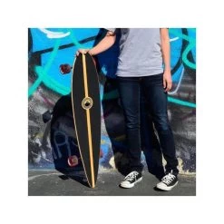 This Surfer longboard pintail deal is made out of 9 ply Canadian maple and comes with Q-ball black wheels. It has a medium flex with no concave and is 40 inches long.