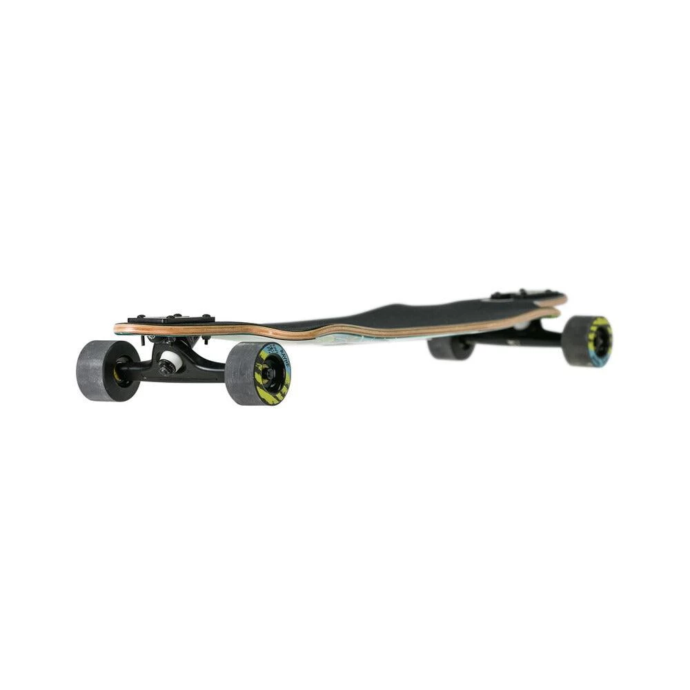 36″ Maple downhill freeride longboard. Ergonomic radial drops with a rocker give this board great pockets for foot placement. Drop mounting gets you even lower for comfortable pushing and stable but drifty maneuvering.