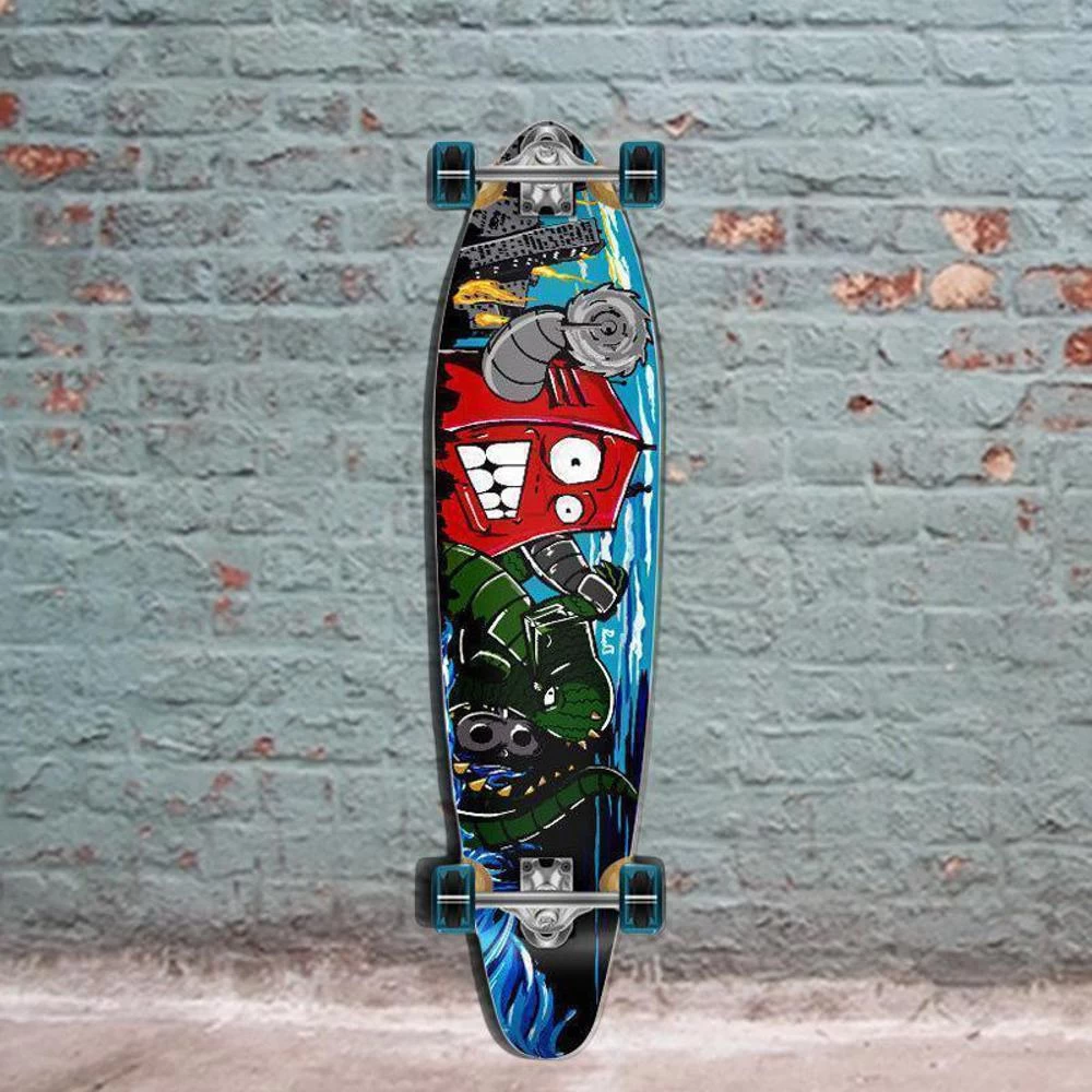 Love robots and robotics! This is the board for you. This cheap and quality kicktail longboard has a medium concave that will help you with big tricks, ollies, pivots, slides and more.