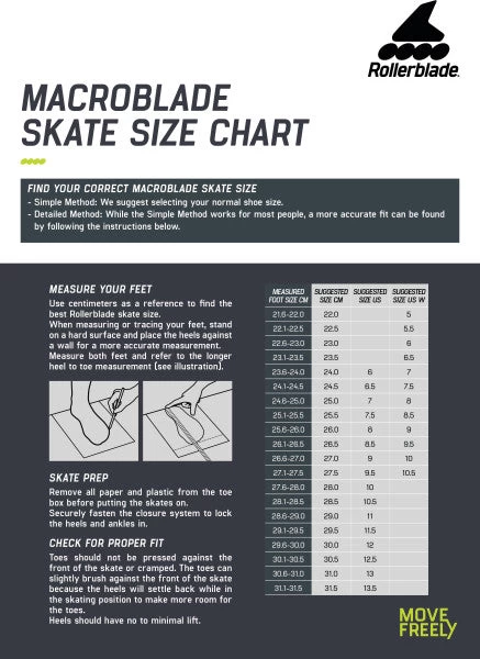 Size advice – The Macroblade 90 skates fit fairly true to size but if in doubt go a half size up.