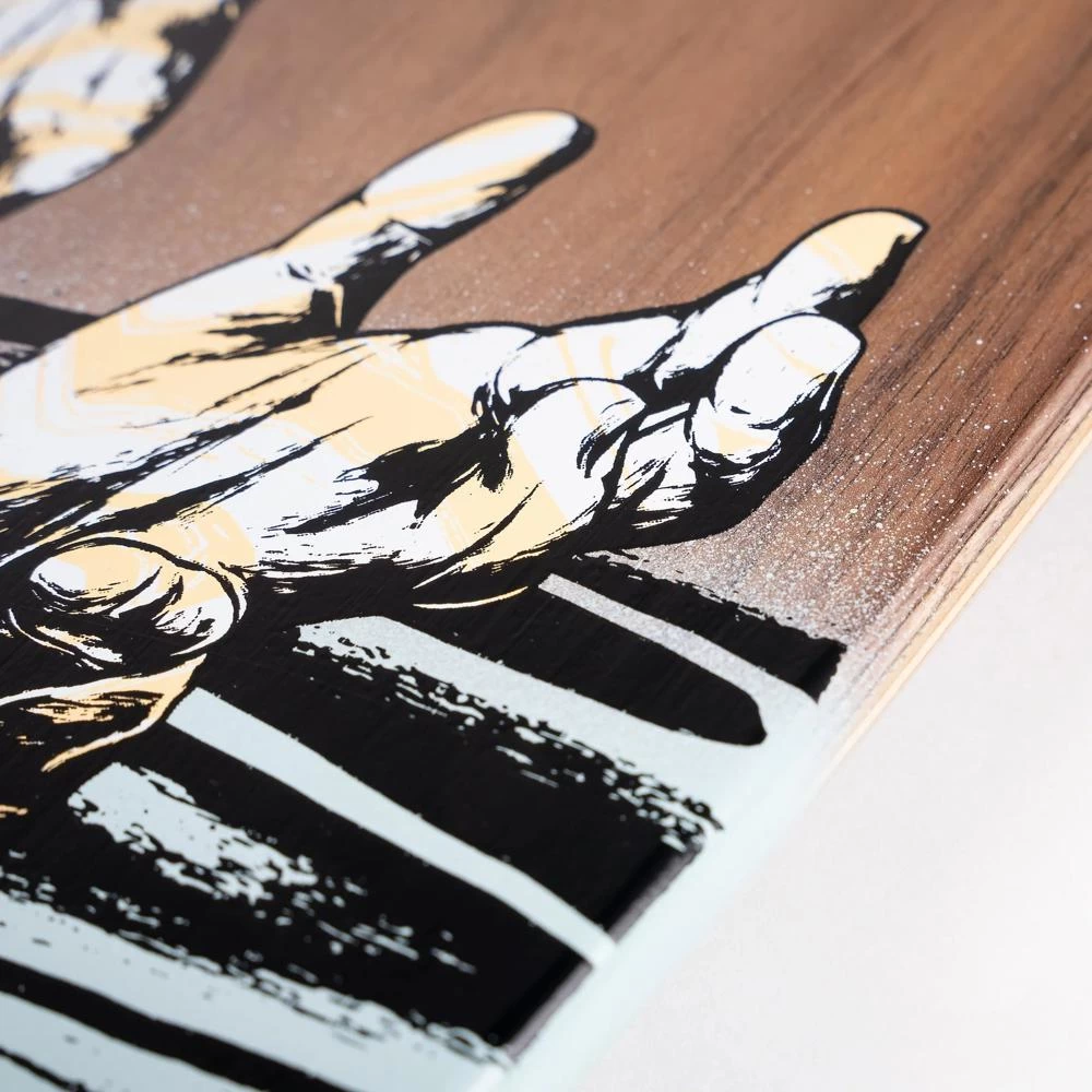 The Journey Walnut Collection is here to expand your consciousness… and your quiver. We tapped artist, Curtis Hadzicki, to create these graphics. He drew slight inspiration from ancient Greek mythology with a psychedelic, Southern California twist. The simple graphic silhouettes serve to provide a stark contrast with the Walnut bottom plies.