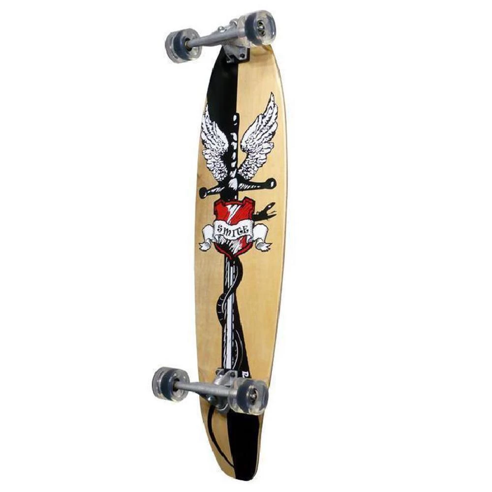 The Punked Smite kicktail longboard has a very cool graphic in black, white, and red. It comes complete and is ready to roll when it arrives.