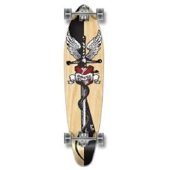 The trucks on this kicktail board are heavy duty and it comes with clear wheels and chrome bearings. The low price makes this a great kicktail longboard deal.