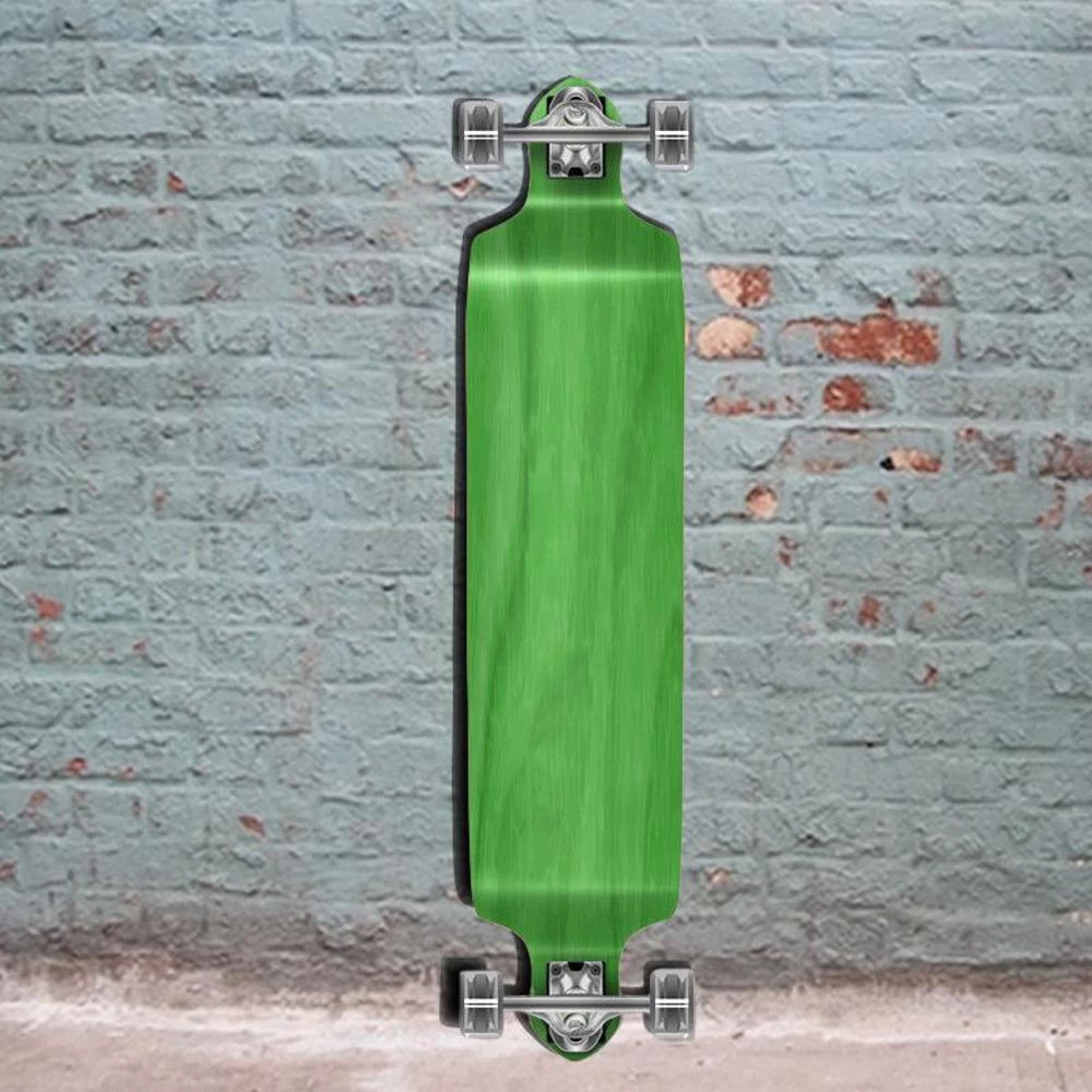 It comes with clear longboard wheels and the drop down longboard is made out of 9 ply Canadian Maple. This blank longboard comes in different colors. This one is for the stained green. You can decorate it the way you want. This drop down longboard deal comes complete and is ready to ride when you receive it.