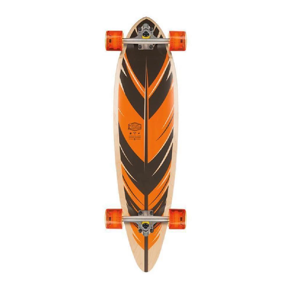 This nice portable cruiser, carving board is a good size and you will have a lot of fun with it! The blunt nose longboard has a more rounded nose than a regular size pintail. It is a great cruiser.