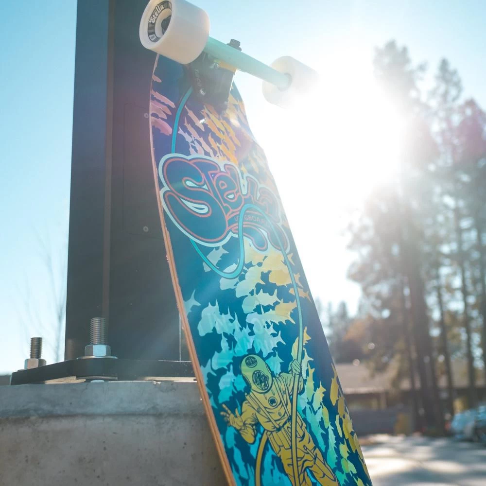 This legendary Kicktail board features a colorful deep-sea diver graphic and is awesome to ride. The kicktail adds a lot of versatility to this board and we know you will love it. Great for tricks and cruising around.
