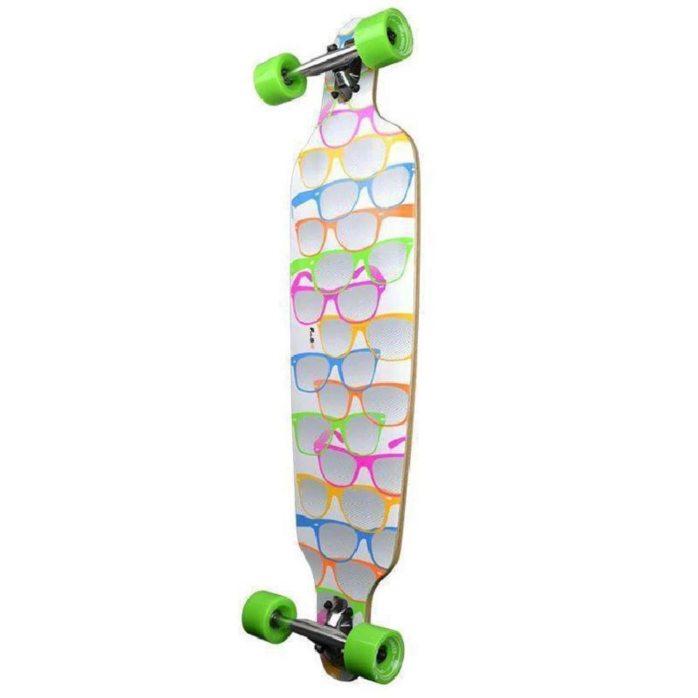 Put on your cool sunglasses and shred away on this nice colorful Shades kicktail longboard from Punked. It comes fully assembled, so when you get it you can roll right away!