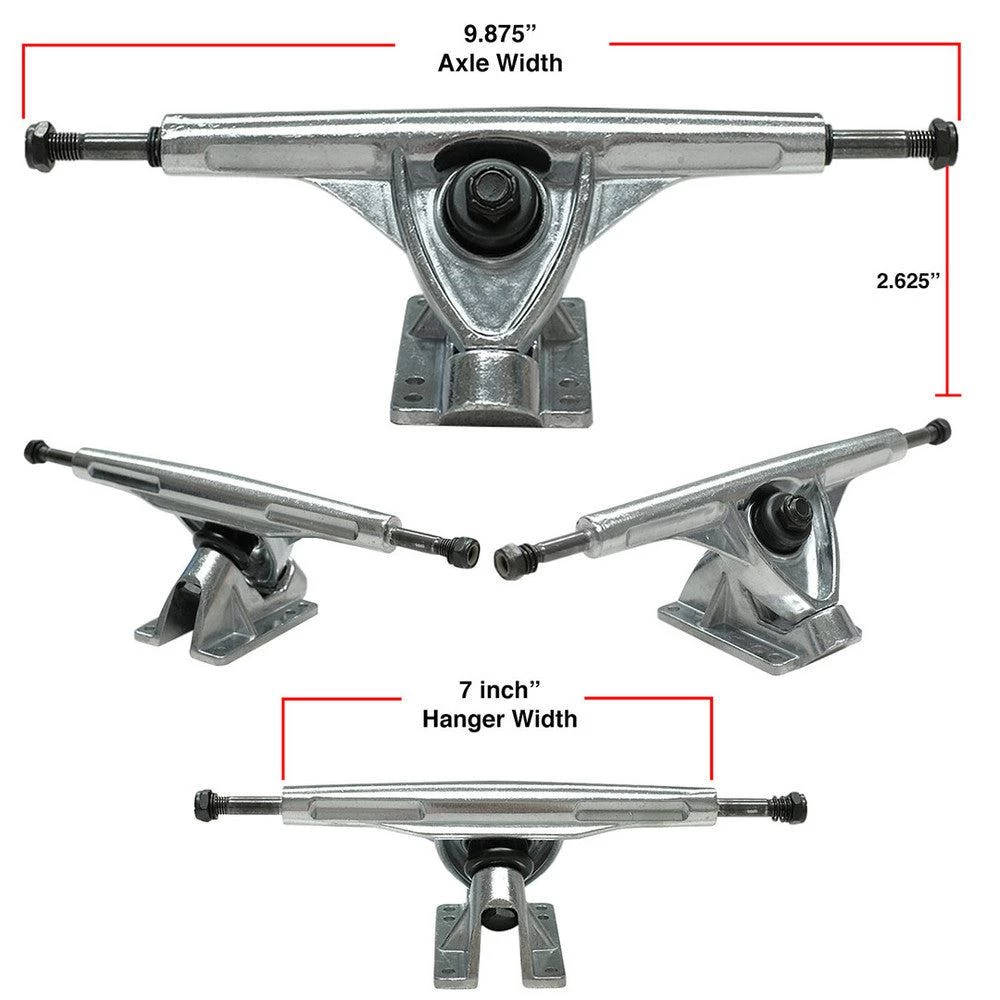 - Trucks: 9.675″ HD7 Heavy Duty Trucks, 180mm Hanger, Aluminum Alloy